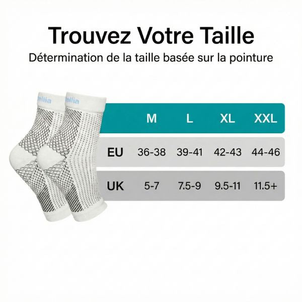 Contrairement aux compressions classiques qui serrent la jambe comme un garrot, notre technologie de Compression Graduée 360° épouse la forme de votre pied. Elle cible spécifiquement la voûte plantaire et la cheville pour réduire l'inflammation, tout en laissant vos orteils libres de bouger. C'est le soutien ferme mais doux dont vos nerfs ont besoin pour se calmer.